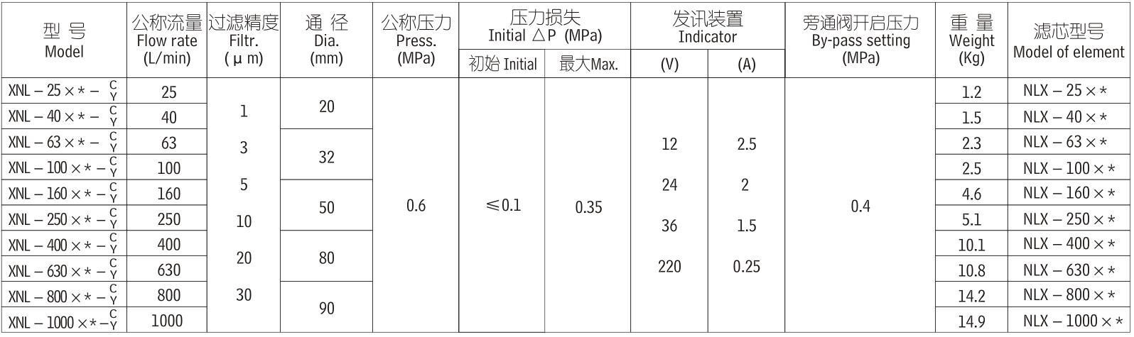注:*為過濾精度 如過濾油液為一般液壓油,流量800L/min、精度20微米,
