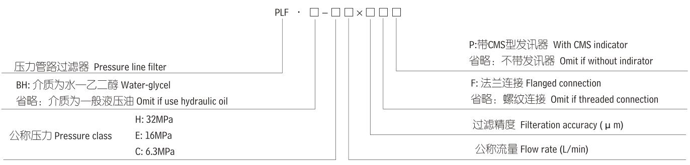注:*代表過濾精度 如流量240L/min 壓力32Mpa 精度5微米 帶發(fā)訊器